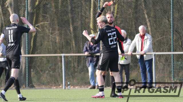 Nach einem schlechten Start – 0:1 nach 11 Minuten – gelang es Jan Luca Hedemann auszugleichen (21.). Kurz vor der Halbzeit die wohl spielentscheidende Situation: Niklas Löbmann sah die Ampelkarte, sodass die Gäste den zweiten Abschnitt in Unterzahl bestreiten mussten. Mit dem 1:1 ging es in die Pause.