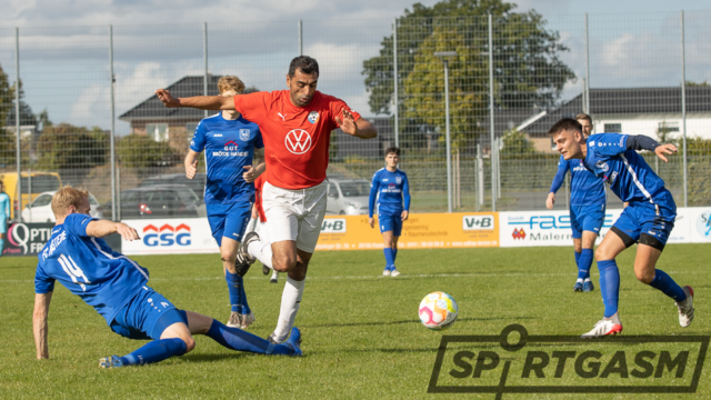 Im ersten Abschnitt hielten die Gäste noch gut mit. Sie gingen sogar durch Bünyamin Kapakli, der von Suayb Gürbüz in Szene gesetzt wurde, in Führung (8.). Nach einem Foul von Felix Hohn bekam Rastede einen Elfmeter, den Wolff verwandelte. Kurz darauf brachte Hasani die Ammerländer in Front (35.). Doch Mehmet Acar fasste sich ein Herz und sorgte per Distanzschuss für den Ausgleich. Zwei Paraden von Jendrik Heinecke im Eins-gegen-Eins verhinderten einen Rückstand zur Pause.
