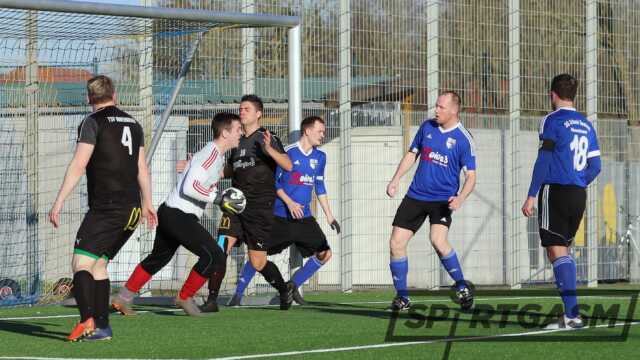 Von Beginn an spielte sich das Geschehen weitestgehend in der Hälfte der Stadlander ab. Allerdings hätte auch die SGSSR zu zwei Torerfolgen kommen können, wenn nicht sogar müssen. Zweimal scheiterte Nico Strowitzki aus kurzer Distanz. Auf der Gegenseite schoss Sebastian Rabe den TSV mit 2:0 in Front. Seinen dritten Treffer verpasste Rabe, weil er per Elfmeter an Andy Ostendorf scheiterte.