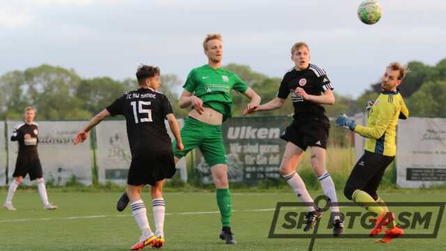 Mitte der 1. Halbzeit wurde Sande stärker. Marvin Wieting konnte zwei eins-gegen-eins-Situationen entschärfen. In der 38. Minute war aber auch er machtlos. Nach einer Ecke köpften die Gäste zum Ausgleich ein.