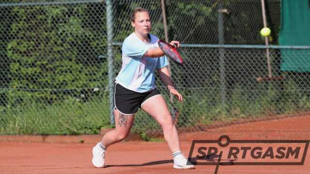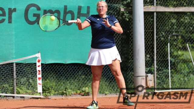 In dieser Begegnung spielten beide Teams jeweils mit zwei Junioren-Spielerinnen, wobei die TKN-Damen aufgrund ihrer besseren LK-Einstufungen ihrer Favoritenrolle gerecht wurden. In der ersten Einzelrunde musste Vivien Zobel (LK 14,5) gegen die 10 Jahre jüngere B-Juniorin Luisa Garvels (Jg. 2010/LK 17,7) alles geben, um die Oberhand zu behalten. Dagegen löste die B-Jugendliche Paula Schwebe (Jg. 2009/LK 16,7) auf TKN-Seite ihre Aufgabe gegen Finja Schlarmann (LK 20,9) mit 6:0/6:0 bravourös. Im Spitzenspiel konnte sich die A-Juniorin Lilly Müller (Jg. 2006)/LK 12,7) in zwei Sätzen gegen Emma Wessels (LK 15,5) behaupten, während Katharina Bultmann (LK 14,5) gegen die 14 Jahre jüngere B-Jugendliche Marlene Scholz (Jg. 2010/LK 18,3) nach gewonnenem ersten Durchgang den warmen Witterungsbedingungen Tribut zollen musste und noch verlor. Sie wurde dann im Doppel durch Mannschaftsführerin Jana Okrey ersetzt. Beide Mannschaften ließen dann ihre Juniorinnen zusammen spielen, die aber jeweils gegen die älteren Paarungen antreten mussten. Das führte dazu, dass Zobel/Okrey im Spitzendoppel gegen die Gäste-Youngster antraten und Müller/Schwebe in der zweiten Paarung auf die etablierten Gäste-Spielerinnen trafen. Das TKN-Nachwuchsduo löste dann aber seine Aufgabe sowas von abgeklärt, dass der vierte Punkt zum Gesamtsieg schon gesichert war, bevor die Spitzenpaarung in ihrem Match in den zweiten Satz ging. Anschließend lief es dann bei Zobel/Okrey auch etwas unbeschwerter, so dass auch der zweite Doppelpunkt gebucht werden konnte.