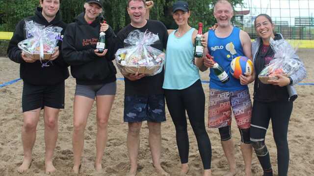 Am Samstag, den 15. Juni, traten die Mixed-Teams gegeneinander an. „Der Samstag verlief recht entspannt, da wir durch einige Absagen doch nur zwei Felder aufbauen mussten für sieben Teams. Aber dennoch hatten wir tolle Spiele auf sehr gutem Niveau“, fasst Organisatorin Alexandra Taylor zusammen. Am Nachmittag stand die Siegerehrung an; den dritten Platz auf dem Siegertreppchen sicherte sich das Team „Netzfetzer“ (Smilla Lankenau/Henry Fuchs). In einem spannenden Finale ging Platz zwei an „Leon guckt zu“ (Monica Dohmann/Tobias Dohmann). Sieger des Turniers waren die „Beacheroos“ bestehend aus Iris Zimmermann und Heiko Hadler.