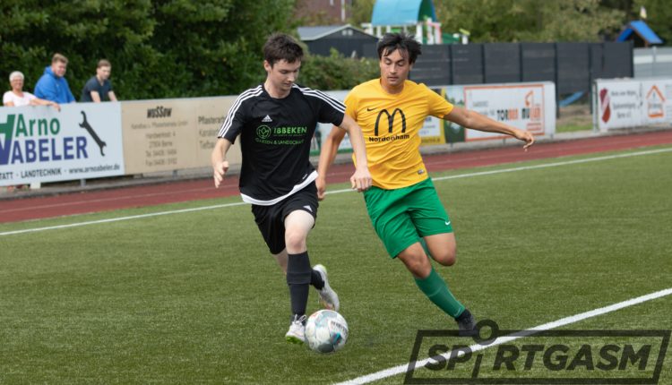 Im Kreispokal-Wettbewerb für zweite Mannschaften hat sich die Reserve der Spielvereinigung Berne gegen den TSV Abbehausen II mit 2:0 durchgesetzt. Patrick Guttmann und Tim Rydzek erzielten für die Gastgeber die Tore