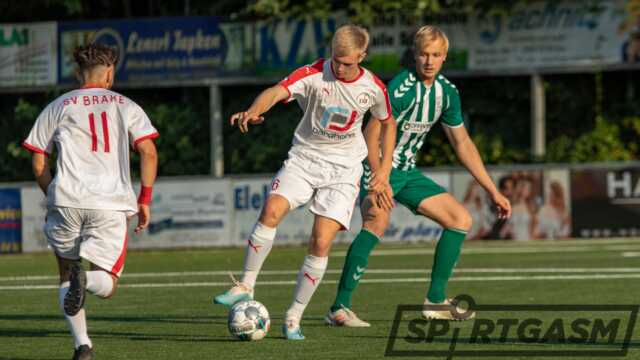 Die A-Jugend des SV Brake bleibt in der Landesliga auf Erfolgskurs. Gegen den VfL Oldenburg gewannen die Kreisstädter mit 2:0. Sie sind somit nach drei Spielen noch ungeschlagen und stehen mit sieben Punkten auf dem dritten Tabellenplatz.