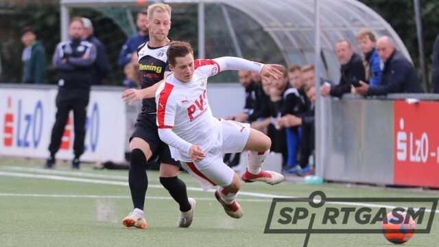 Nach dieser Großchance schlugen die Schüttorfer zweimal innerhalb von 180 Sekunden zu. Marcel Holthaus schoss die Gäste mit seinem Doppelpack auf die Siegerstraße (38., 41.). „Wir waren in den ersten 45 Minuten zu passiv. Schüttorf hat aus drei Chancen drei Tore gemacht“, sagte SVB-Trainer Jürgen Damsch.