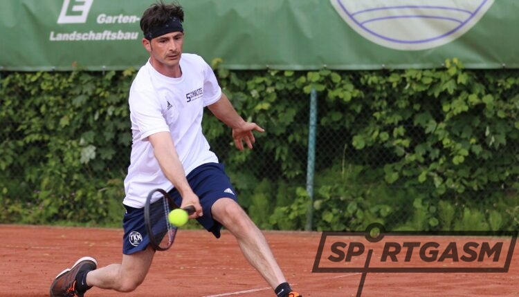 Bei der 16. Auflage des Hopfensee-Cups in Füssen startete der Frontmann von den TKN-Landesliga-Herren 30 während seines Urlaubs in Bayern bei einem hochkarätigem Senioren-Ranglistenturnier der Kategorie S 2, wo in der Regel mehr als die Hälfte aller teilnehmenden Spieler in der deutschen Rangliste vertreten sind. In der Altersklasse Herren 40 war Stefan Harms (Jg. 83/LK 6,6) unter 11 Teilnehmern mit sechs Ranglistenspielern an Position neun zugelassen und musste somit als Ungesetzter im Achtelfinale beginnen. Mit einem 7:5/6:4-Auftakterfolg gegen den einheimischen Daniel Engel (LK 10,2) vom TTC Füssen schaffte er den Einzug in das Viertelfinale, wo er dann überraschend den an Nummer vier gesetzten Evgeny Trushin (LK 4,9) vom DJK Würmtal München besiegte. Den deutschen Ranglistenspieler der Herren 45 (Nr. 94) bezwang er recht deutlich mit 6:1/6:3. Im Halbfinale wartete dann der nächste H45-Ranglistenspieler mit dem an Position zwei gesetzten Stefan Burlein (Nr. 39/LK 3,7) von der TG Kitzingen. Im Duell zweier Landesliga-Spitzenspieler verpasste dann Harms nur äußerst knapp mit 6:7/7:5/6:10 den Einzug in das Finale. Aber 422 Punkte für die Rangliste und eine Verbesserung der LK von 6,6 auf 6,4 standen am Ende der Woche zu Buche.