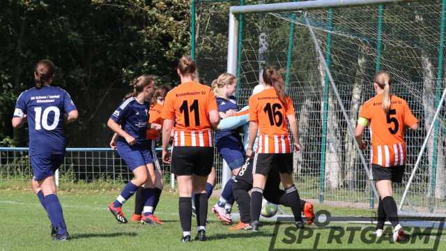Die SG Schwei/Seefeld/Rönnelmoor hat nach ihrer Auftaktniederlage gegen den VfB Oldenburg am Sonntag den Krusenbuscher SV II mit 5:3 bezwungen. In einem abwechslungsreichen Spiel, bei dem es zur Pause 2:2 gestanden hatte, erzielten Swantje Logemann, Lara Marie Wimmer, Laura Pargmann und Doppeltorschützin Geke Bischoff die Treffer.