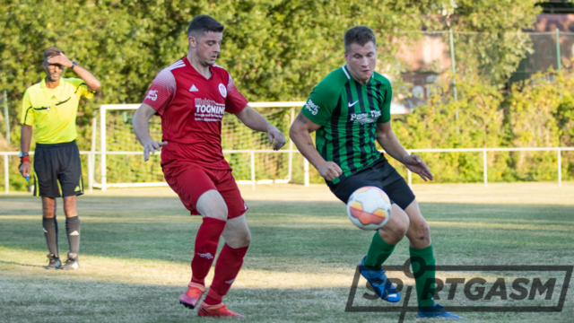 So dauerte es bis zur 38. Minute, ehe die Zuschauer ein Tor bejubeln konnten: Olaf Speckels zog über Rechtsaußen in den Strafraum und wurde von einem Gäste-Verteidiger gefällt. Da der Gefoulte nicht selbst schießt schnappte sich Sturmkollege Mirco Strietzel das runde Leder, verlud den Sander Keeper und schob den Ball rechts unten ins Eck – 1:0. Dies war gleichzeitig auch der nicht unverdiente Halbzeitstand.