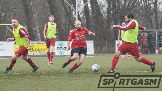 Bei widrigen Witterungsverhältnissen taten sich die Gastgeber im ersten Abschnitt noch ein wenig schwer. „Wir haben uns zu häufig in Einzelaktionen verzettelt“, sagte SpVgg-Spielertrainer Hauke Steenken, der einen Dreierpack schnürte. Dennoch führte Berne mit 3:1 zur Pause.