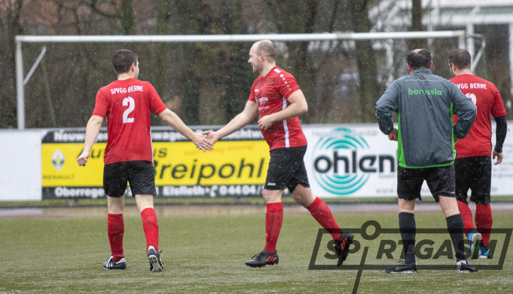 Bei widrigen Witterungsverhältnissen taten sich die Gastgeber im ersten Abschnitt noch ein wenig schwer. „Wir haben uns zu häufig in Einzelaktionen verzettelt“, sagte SpVgg-Spielertrainer Hauke Steenken, der einen Dreierpack schnürte. Dennoch führte Berne mit 3:1 zur Pause.