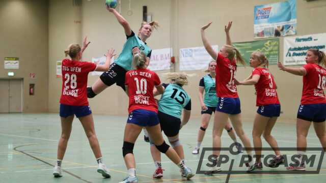 Die Gäste verlangten der HSG noch einmal alles ab. Im ersten Abschnitt entwickelte sich eine über weite Strecken ausgeglichene Partie. Nach sieben Minuten ging Ofen mit 3:2 in Führung. Es folgte ein 4:0-Lauf der Nordenhamerinnen – 6:3 (11.).