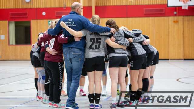 Es war noch eine Minute zu spielen, der OTB kam wieder heran auf 24:23. Mit einer Auszeit versuchte Trainer Bernd Voskamp seine Mannschaft auf die letzten 30 Sekunden einzustellen. Mit viel Glück, aber auch Einsatz, konnte die HSG beide Punkte in Nordenham behalten.