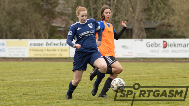 Im zweiten Durchgang ging es ganz schnell. In der 46. Minute traf Gesa Marie van der Velde nach einer Flanke von Imke Kaemena zum 1:1. Danach setzte Imke Kaemena die gegnerische Abwehr nach einem Torschuss von van der Velde unter Druck und erzielte die Führung.