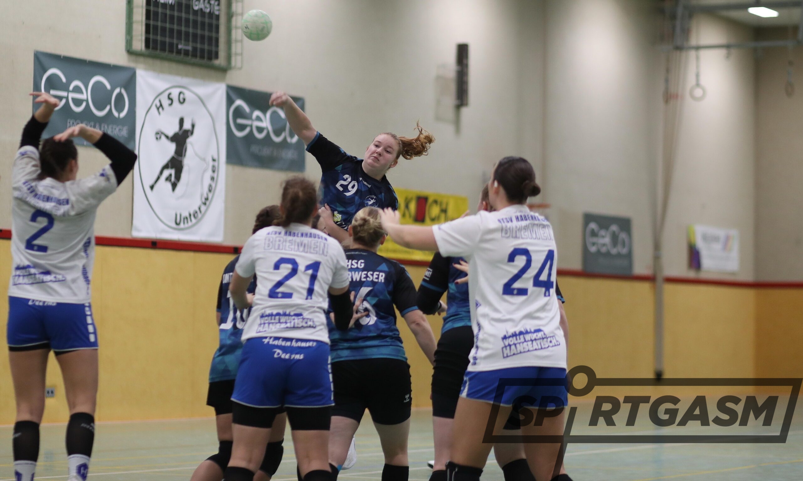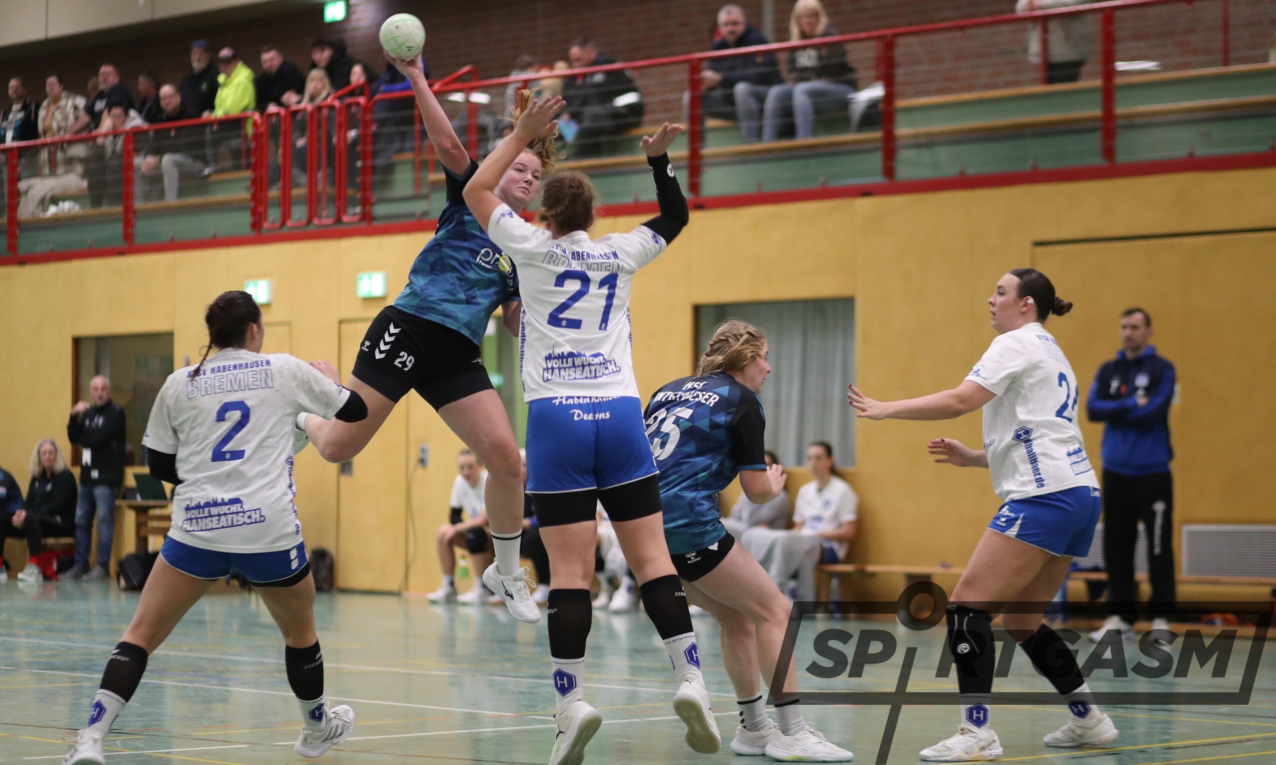 Das stachelte den Gegner aus Bremen weiter an. Bis zur 20. Minute konnte ein Zwei-Tore-Vorsprung gehalten werden (10:8). Als Judith Palm in der 25. Minute den Treffer zum 13:11 erzielte, hofften alle, dass die Führung bis zum Seitenwechsel Bestand haben würde. Doch Habenhausen glich noch zum 13:13 aus – mit diesem Ergebnis ging es in die Pause.