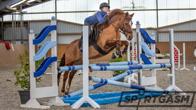Mit Cabernee reitet sie am liebsten Springprüfungen. Da Cabby, wie er genannt wird, in der Dressur mit seiner temperamentvollen und frechen Art nicht gerne in der Abteilung hinter anderen Ponys herläuft, sind die beiden in Springreiterwettbewerben und E-Stilspringen erfolgreich.