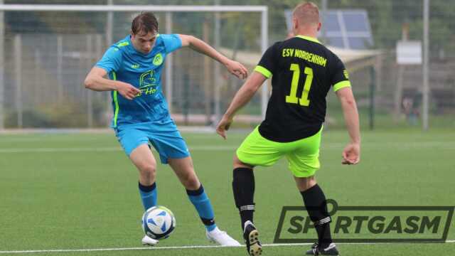 Erst in der 39. Spielminute war es Olaf Speckels, der per Foulelfmeter den ESV in Front bringen konnte. Zuvor war ATR-Verteidiger Aaron Nordhausen mit einem katastrophalen Fehlpass, vor dem eigenen Tor, maßgeblich an der Entstehung beteiligt gewesen. Kurz vor der Pause verpassten es die Nordenhamer nach einer Ecke, die Führung auszubauen.