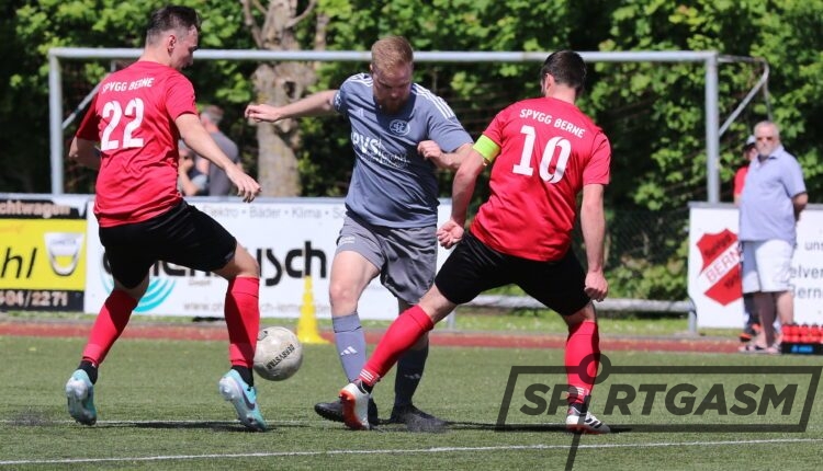 Die SpVgg Berne hat am Sonntag das Derby gegen den SC Ovelgönne mit 2:0 gewonnen und somit die Tabellenspitze verteidigt. Allerdings hat der Tabellenzweite GVO Oldenburg II bei einem Punkt Rückstand auch ein Spiel weniger bestritten. Im Derby unterlief Marvin Müller ein Eigentor, welches den SCO ins Hintertreffen brachte. Sieben Minuten vor dem Ende sorgte Maximilian Gärdes für die Entscheidung.