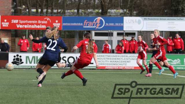 Von Beginn an übernahm der SV Brake die Kontrolle über das Spiel und setzte den Gegner früh unter Druck. Bereits in der 13. Minute brachte Pia Templin die Gastgeberinnen in Führung. Kurz danach erhöhte Jana Oonk (18.) auf 2:0. In der 24. Minuten erzielte Templin ihren zweiten Treffer, ehe die Gäste auf 1:3 verkürzen konnten.