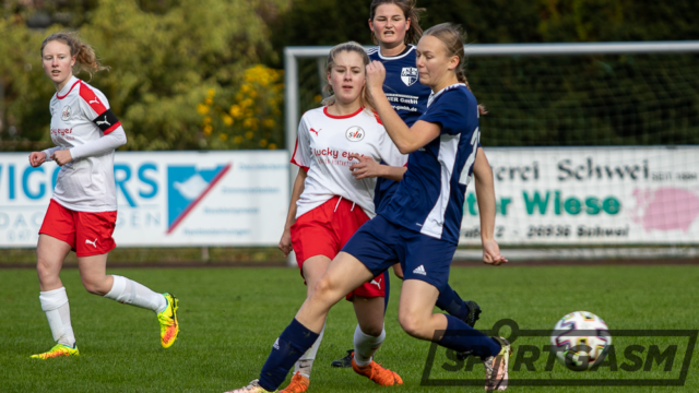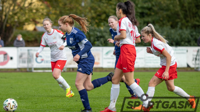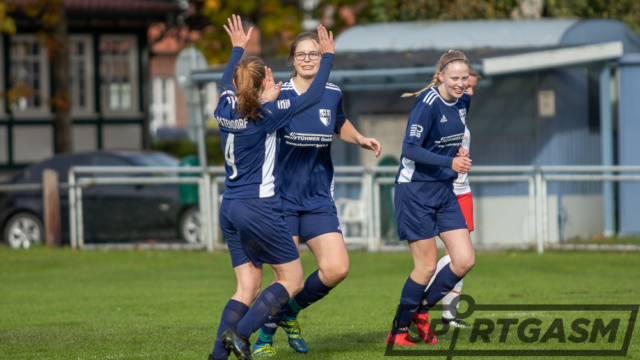 Die favorisierten Stadländerinnen taten sich gegen die bis dato noch punktlose SVB-Reserve von Beginn an schwer. Mit ihrer ersten Torchance im Spiel gingen die Gastgeberinnen dennoch mit 1:0 in Führung: Lynn Ostendorf setzte sich energisch über die linke Seite durch – ihre scharfe Hereingabe konnte Neele Lüdemann nur noch ins eigene Tor ablenken (14.).