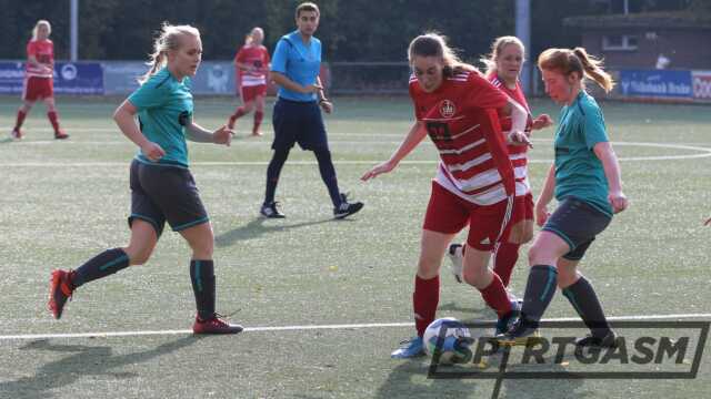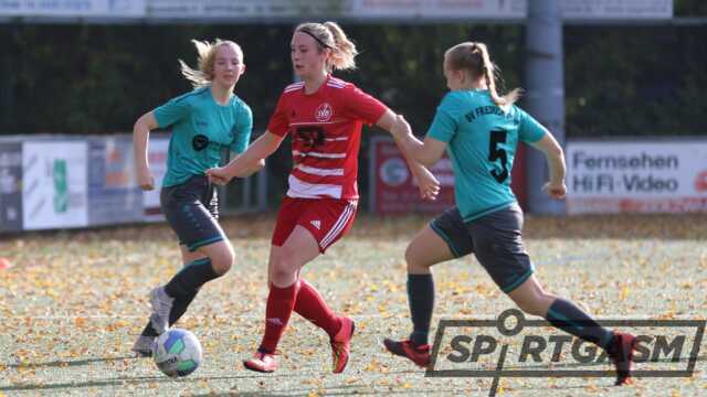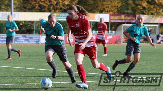 „Die Gäste hätten sich nicht beklagen dürfen, wenn wir zur Pause 5:0 führen“, sagte Peters. Die Gastgeberinnen ließen eine Reihe hochkarätiger Torchancen aus. Entweder scheiterten sie am Aluminium oder an der gut aufgelegten SG-Torhüterin. So stand es zur Halbzeit „nur“ 2:0. Die vierfache Torschützin Jennifer Dirks verwandelte einen Elfmeter (7.). Zudem traf Liza Seelemeyer drei Minuten vor der Pause.