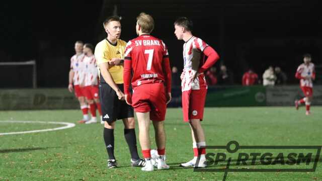 Eine insgesamt konzentrierte und taktisch disziplinierte Leistung brachte der SV Brake auf den Platz. In der dramatischen Schlussphase zeigte die Mannschaft von Jürgen Hahn zudem eine tolle Moral. Der SVB wollte kompakt stehen und über schnelles Umschaltspiel zum Erfolg kommen. In einer ausgeglichenen ersten Halbzeit mit Chancen auf beiden Seiten war es Miklas Kunst, der mit einem tollen Schuss in der 38. Minute die Führung für den SV Brake erzielte. Mit guter Abwehrarbeit nahm der SVB das durchaus verdiente knappe Ergebnis mit in die Pause.