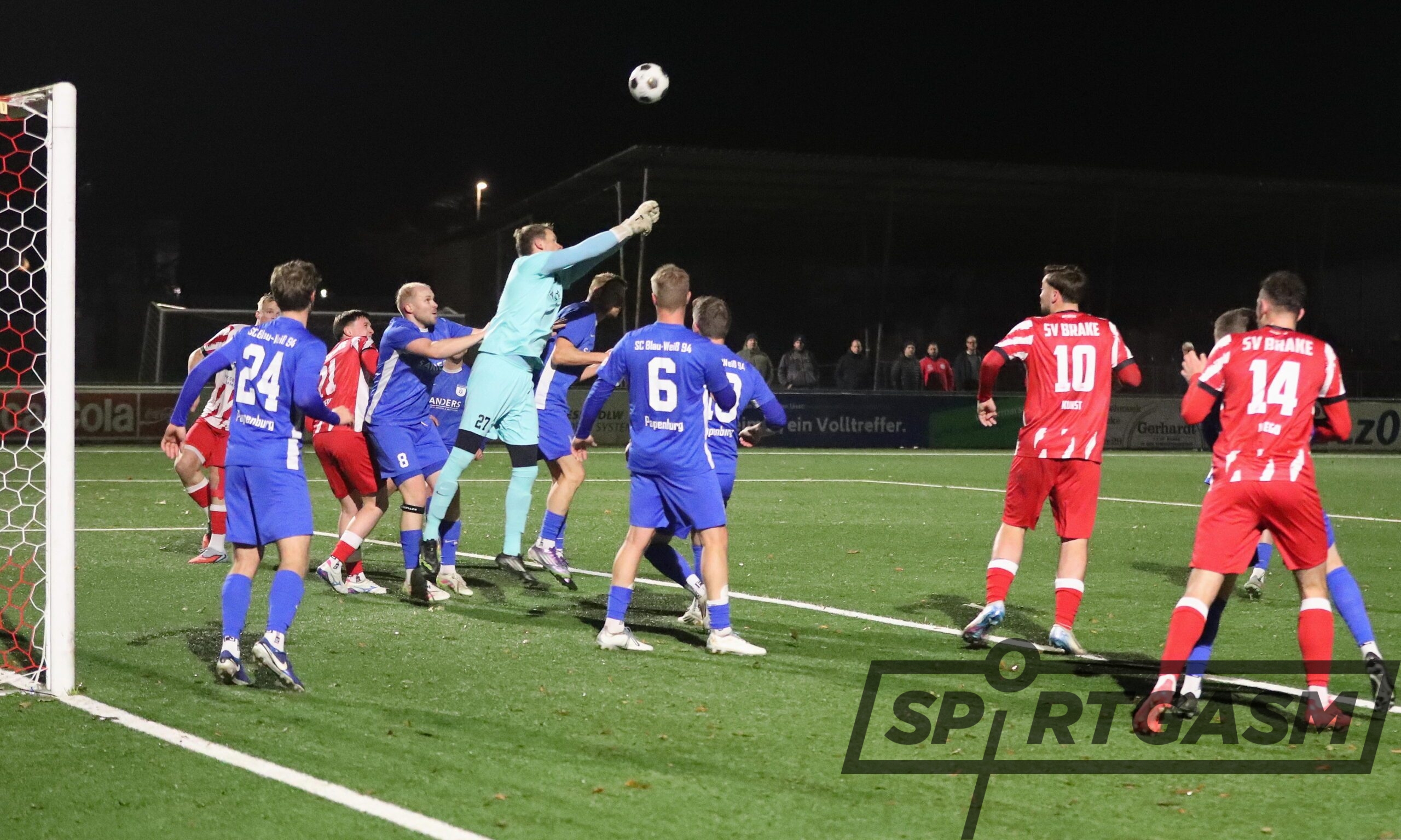 In der zweiten Halbzeit dauerte es etwa 10 bis 15 Minuten, bis der SV Brake wieder aktiv war. Man stand in der Anfangsphase zu weit weg und war in den Zweikämpfen nicht erfolgreich. Ein berechtigter Handelfmeter in der 51. Minute eröffnete dem Gast die Möglichkeit zur Ergebniskorrektur. Keine Chance für Soeren Büsing im Braker Tor, denn Papenburg verwandelt sicher. Der Tabellenführer lässt nun zwischenzeitlich seine Klasse aufblitzen, der SV Brake bleibt aber weiterhin mit Kontern gefährlich. Jannes Vehrenkamp trifft in dieser Phase nur das Gebälk. In den Schlussminuten setzt sich Papenburg über außen durch, spielt quer und Maas trifft in der 90. Minute zum 1:2.
