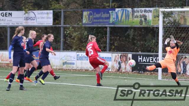 Der Übungsleiter zeigte sich vom Auftreten der Gäste beeindruckt. „Lohne hat Oberliga-Niveau“, meinte er. So ließen die Blau-Weißen den Ball gut laufen und agierten überlegen. Doch die Gastgeberinnen hielten mit Kampf und Einsatz dagegen und kassierten so nach dem frühen 0:1 (4.) bis zur Pause keinen weiteren Gegentreffer. Zudem ließen sie zwei gute Möglichkeiten aus. „Mit viel Glück hätten wir zur Halbzeit sogar 2:1 führen können“, so Peters.