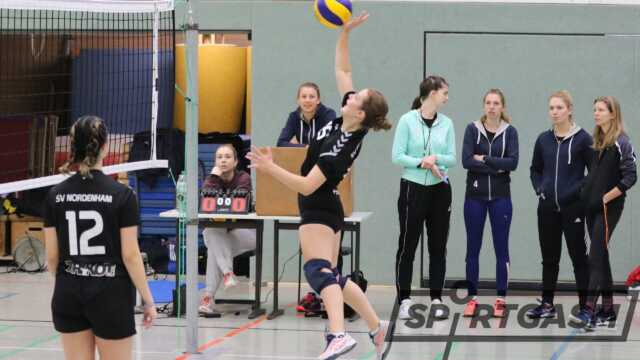 In der zweiten Begegnung gegen den TuS Bloherfelde II startete der SVN II mit einer stark veränderten Aufstellung, um sich gegen das unbekanntere Team heranzutasten. „Man merkte doch, dass das erste Spiel noch in den Knochen lag“, erklärt die Übungsleiterin. Im ersten Satz lagen die Nordenhamerinnen schnell zurück und konnten den Vorsprung nicht mehr einholen. Mit 17:25 ging der Satz an die Gäste. Im zweiten Durchgang war der SVN wieder konzentrierter. Man konnte sich auch hier wieder in der Blockarbeit beweisen. Am Ende fehlte auch im zweiten Satz der letzte Kampfgeist und das Team um Anna Saalbach verlor knapp mit 22:25. Im dritten Satz konnte man an den vorherigen Satz anknüpfen. „Eigentlich hatte alles grundsätzlich gut gepasst, nur konnten wir uns nicht ganz durchsetzen“, so Lyndzey Mowatt. Auch der Satz sollte mit 21:25 an die Gäste gehen und somit war das Spiel verloren.