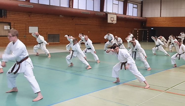 Jeder Trainingstag begann mit Technikkombinationen. Es folgten Einheiten für prüfungsbezogene Kumiteformen wie Sanbon, Ohyo oder Kihon. Dazwischen ging es ums Erlernen beziehungsweise Verfestigen der Katas. Zu den Kata-Trainingseinheiten kam das Bunkai. Trainiert wurden auch Bodenkampf (Idori) und Messerkampf (Tantodori).