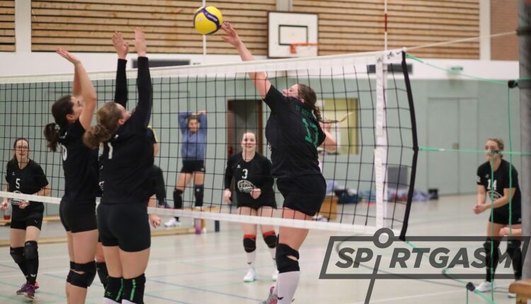 Im ersten Satz lag das Heimteam deutlich zurück, bis eine Aufschlagsserie von Lisa Schröder und Lilia Folmer das Team noch einmal heranbrachte. Der Satz endete dennoch mit einem knappen 21:25.