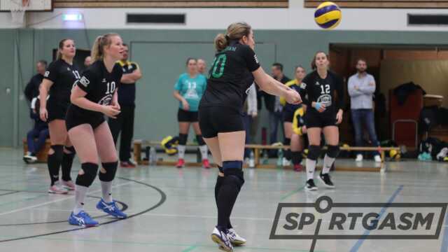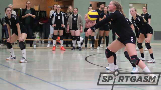 Satz drei war es dann wieder die 1. Frauen die besser ins Spiel kam und sich sofort paar Punkte absetzen konnte. Entscheidend waren hier die knallharten Aufschläge von Lisa Schröder und Constanze Neehuis. Die waren von der Annahme des Gegners kaum zu kontrollieren. Da das gute Blockspiel der 2. Frauen wieder etwas nachgelassen hatte, kam man auch im Angriff wieder besser durch. Wenn die Diagonale durch die guten Mittelblockerin dicht war, versuchte man es longline über die nicht so blockstarken Stellerinnen. Kurz vor Satzende waren es die Aufschläge von Alexandra Taylor die den Vorsprung der 1. nochmal schmelzen ließen und ihr Team somit noch auf 20:23 ran rücken konnte.