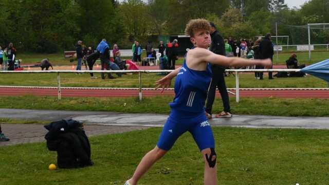Auch das Kugelstoßen lief sehr gut für den SVN-Athleten. Die 4 Kilogramm schwere Kugel flog auf 9,35 Meter. Ebenfalls eine neue Bestweite und Rang 1.