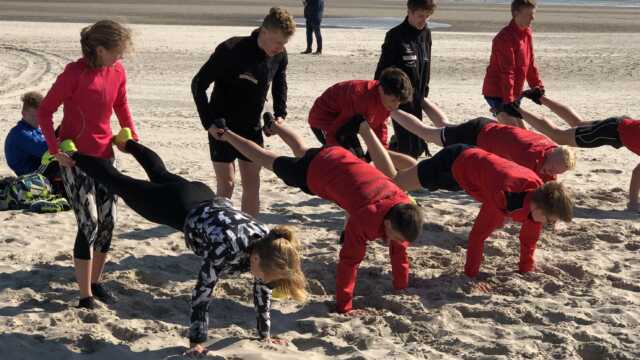 Im Anschluss war noch eine Strandeinheit mit den Oldenburgern am Weststrand angesagt. Den Kräftigungsteil im Sand und den Shuttle Run Test machten die drei Athleten noch mit. Danach war ein sehr intensiver, anstrengender und sonniger Tag beendet.
