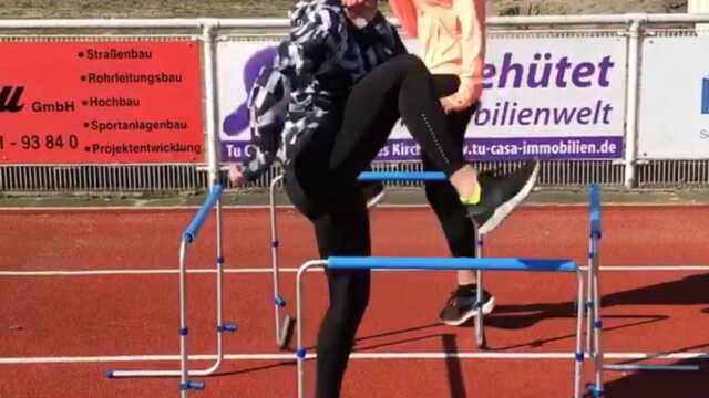 Für Lara und Jule ging es nach dem Frühstück um 10.00 Uhr auf der tollen Sportanlage los, auf der es von Leichtathleten nur so wimmelte. Eine Hürden-Einheit stand auf dem Programm. Anschließend ging es nach knapp zwei Stunden Pause weiter.