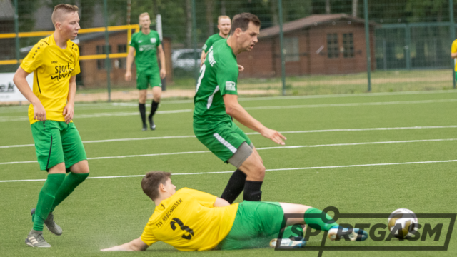 Auf der Gegenseite hatte Jesse Eisenhauer die größte Möglichkeiten im ersten Durchgang. Freistehend scheiterte er zunächst an SG-Torhüter Marvin Wieting. Der Ball landete erneut vor seinen Füßen, doch er brachte das Leder nicht im leeren Tor unter, weil ein Gäste-Akteur auf der Linie klären konnte.