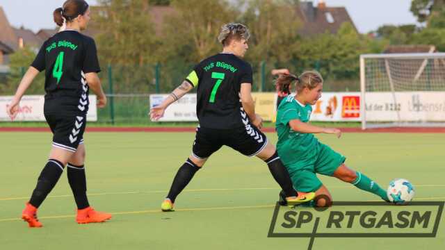 Büppel entfernte sich nun von der Holzfuss-Taktik aus Halbzeit eins, in der sie die Bälle reihenweise in die gegnerische Hälfte droschen, und versuchte über die außen oder mit Steilpässen Richtung Tor zu ziehen. In der 70. Minute lief Chiara Lange nahezu ungestört auf TSV-Torhüterin Nathalie Mertens zu, vertändelte kurz vorher jedoch den Ball.