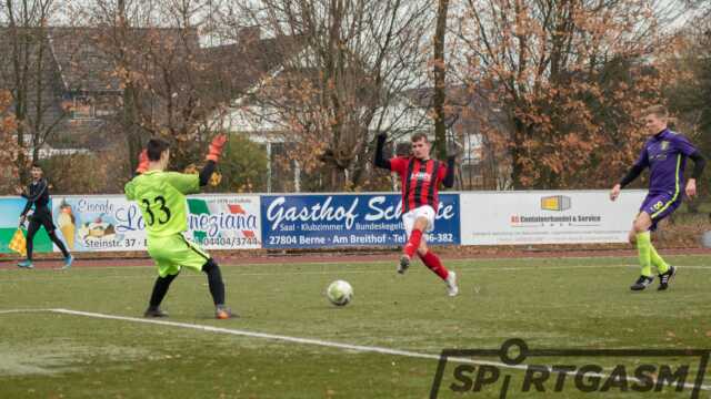Kurz vor der Winterpause hat die SpVgg Berne wichtige drei Punkte im Kampf um den Klassenerhalt geholt. Durch einen 3:0-Erfolg gegen den SV Eintracht Oldenburg konnte die Elf von Trainer Michael Müller den Rückstand zum rettenden Ufer auf 4 Zähler verkürzen. Das Überwintern auf einem Nicht-Abstiegsplatz ist dennoch nicht mehr möglich, selbst wenn die Berner am 8. Dezember ihr letztes Spiel in diesem Jahr gegen den FC Zetel gewinnen sollten.
